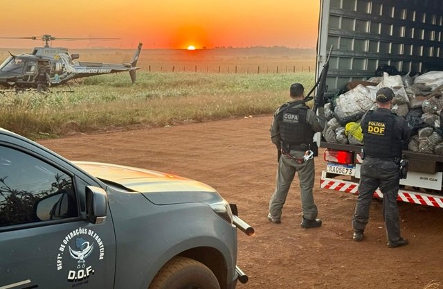 Policiais do DOF (Departamento de Operações de Fronteira) e CGPA (Coordenadoria Geral de Policiamento Aéreo) apreenderam nesta quinta-feira (3), em Dourados, um caminhão Baú carregado com mais de 2.750 quilos de maconha, skunk e haxixe.