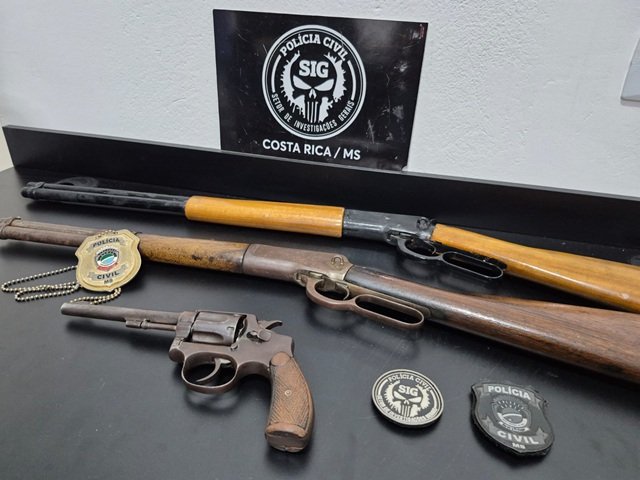 A Polícia Civil de Mato Grosso do Sul, por meio da Delegacia de Costa Rica, apreendeu três armas de fogo nesta quarta-feira (09) durante diligências relacionadas a um acidente de trânsito ocorrido no último dia 7 de julho, envolvendo uma caminhonete Toyota Hilux e um veículo Honda Civic.