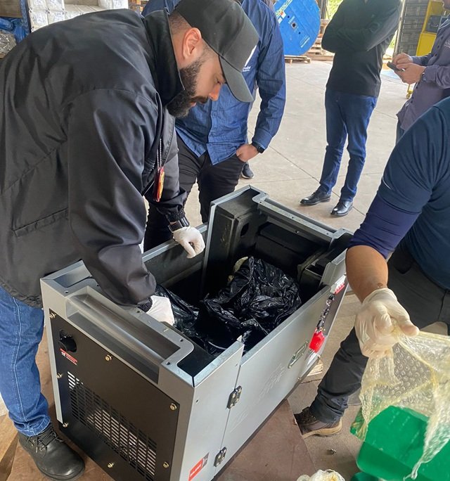 Durante a vistoria, foram encontrados 90 tabletes de maconha, totalizando 90 quilos e 100 gramas, escondidos no compartimento do motor do gerador.