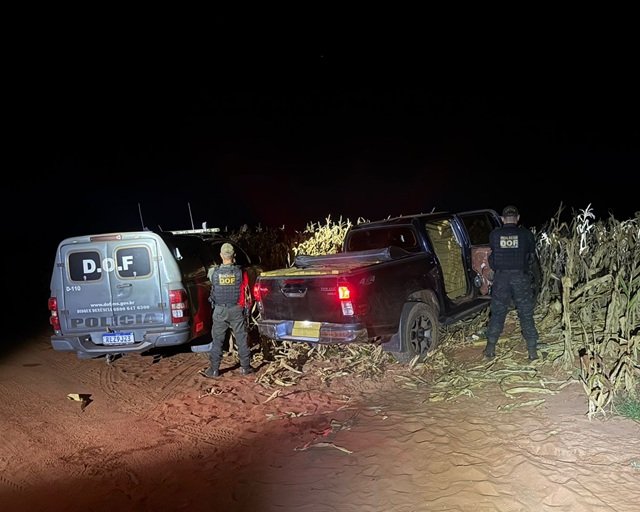 Uma caminhonete Toyota Hilux, furtada no Estado do Paraná, foi recuperada pelo DOF (Departamento de Operações de Fronteira) carregada com quase 2 mil quilos de drogas. A ação foi registrada nesta quarta-feira (16), em Amambai.