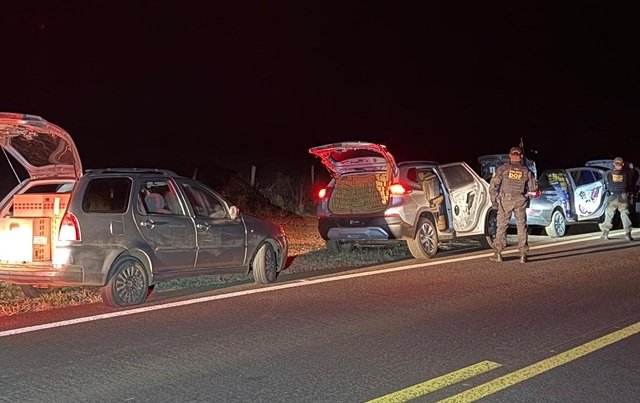 Na ação deste final de semana, os policiais faziam bloqueio na MS-164, próximo ao Trevo do Copo Sujo, quando os carros furaram a barreira e tenteram fugir. Durante acompanhamento, os criminosos abandonaram os veículos e fugiram a pé em meio a uma plantação de milho.