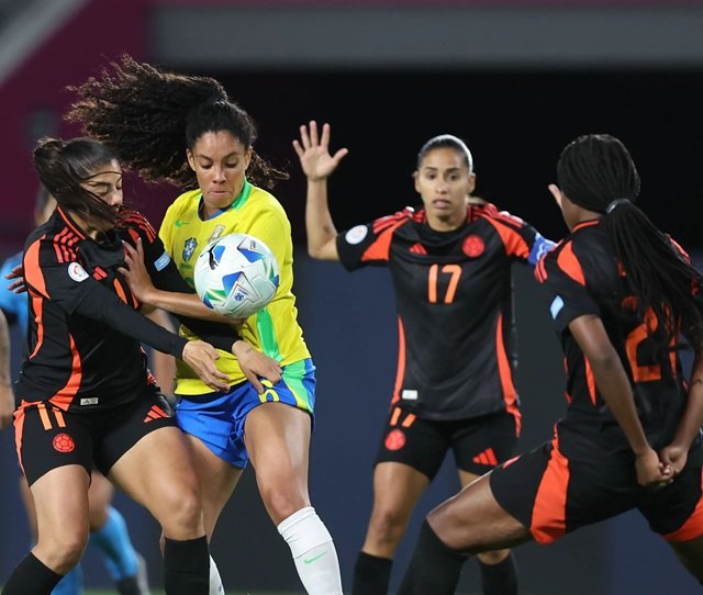 E quem esteve mais perto do gol foi o Brasil, quando Yasmim acertou a trave em uma cobrança de falta. Após um final de jogo com confusão entre as atletas e acréscimos que de oito viraram 11, o Brasil segurou a Colômbia, e confirmou a classificação na liderança.