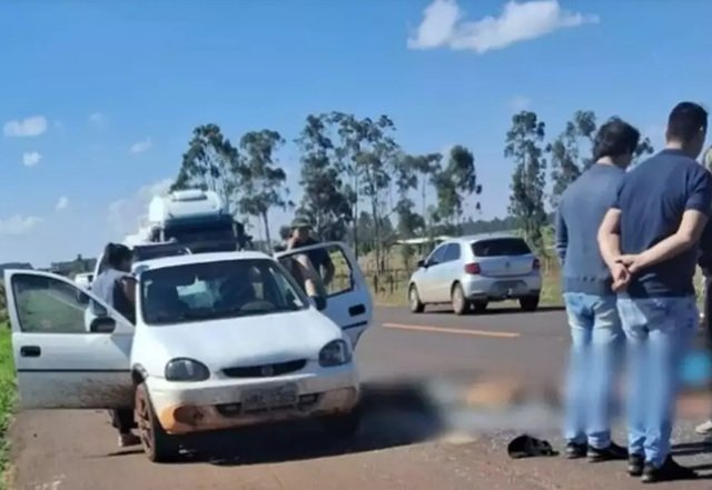 Nesse momento, João e a esposa estavam do lado de fora do veículo, quando foram atingidos por uma motocicleta de origem paraguaia, uma Star, que trafegava logo atrás e bateu com a traseira esquerda do carro.