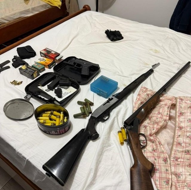 Na primeira, foi localizado um revólver calibre .38, com 3 munições intactas do mesmo calibre, sendo constatado que a arma não possui documentação. Durante cumprimento na outra propriedade, onde o autor se encontrava, foram localizadas várias armas de fogo, e 277 munições de calibres permitidos.