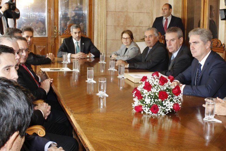 “Recebemos as autoridades de Mato Grosso do Sul, com as quais conversamos sobre o passo histórico que estamos dando com a construção das duas pontes internacionais. Além disso, com a Rota Bioceânica, a produção de nossas regiões chegará aos portos do Pacífico”, pontuou o presidente paraguaio, Mario Abdo Benitez.