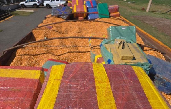 Durante a checagem da carga, os policiais localizaram uma grande quantidade de tabletes de maconha escondidos entre os grãos de milho. O entorpecente, segundo levantamentos do DOF, teria como destino o estado de Santa Catarina.