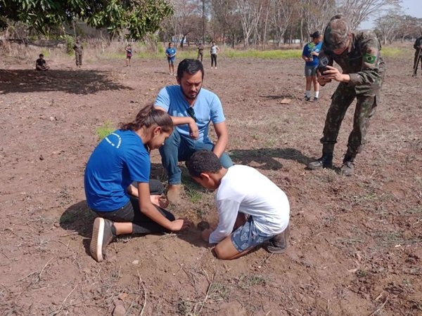 Logo após, os alunos participaram de uma oficina prática de plantio de árvores nativas e frutíferas na área do quartel, em frente à sede do projeto Pelotão Esperança. Ao todo, foram disponibilizadas 100 mudas, que foram plantadas com a participação dos jovens de Aquidauana e de Anastácio.