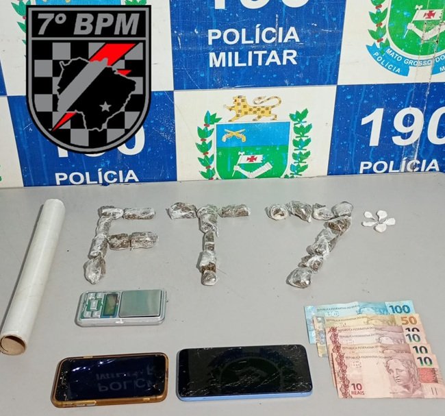 No bairro Jardim Aeroporto II, após denúncia de tráfico, um homem de 19 anos foi preso.