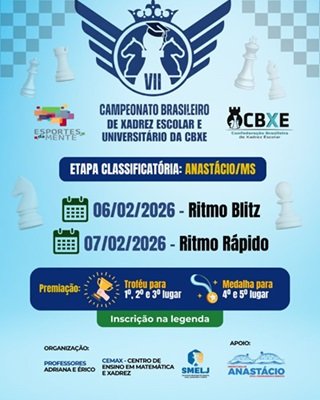 Anastácio vai se tornar a capital do xadrez nos dias 06 e 07 de fevereiro de 2026.
