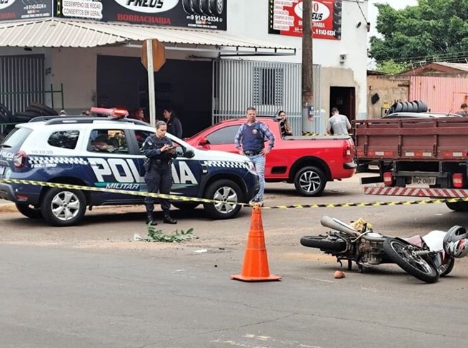Um motociclista de 33 anos, se envolveu em acidente de trânsito com uma viatura oficial na madrugada deste sábado (11), na Rua Antônio Elias, no bairro Jardim Márcia, no município de Dourados.