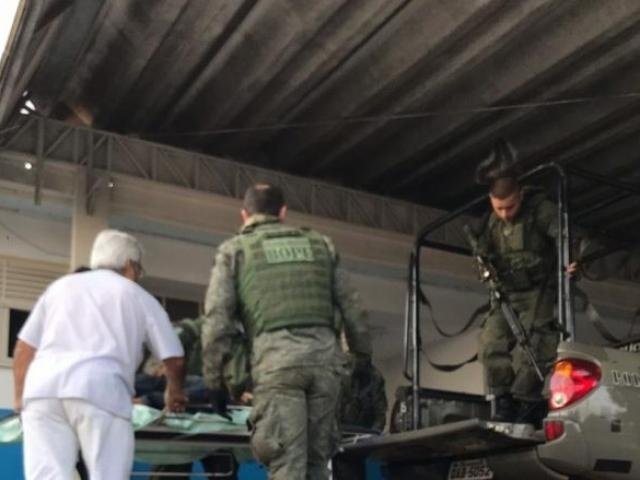 Policiais chegando com o suspeito no hospital. (Foto: Jornal Notícias do Estado)