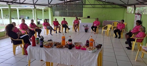 Já na ESF de Piraputanga, a programação contou com uma roda de conversa sobre o câncer de mama, conduzida pela equipe da unidade, com a participação da nutricionista Bianca Freitas, que destacou a importância da alimentação saudável como aliada na prevenção do câncer, e do educador físico Maurício Oliveira, que orientou o grupo sobre a importância da atividade física regular para a manutenção da saúde e do bem-estar.