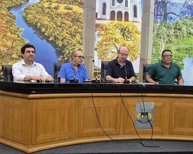 Na mesa de autoridades a presença do vereador Wezer Lucarelli, Secretário de Finanças Ernandes Peixoto, Chefe de Gabinete Anderson Meireles e o contador da Prefeitura de Aquidauana Alair Souza Penha, que conduziu a apresentação das planilhas contendo receitas, despesas e investimentos detalhados das diversas secretarias municipais e, também, um quadro de evolução e previsão do orçamento para o ano de 2026.