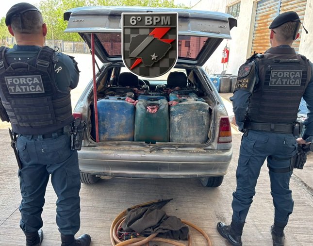 A equipe da Força Tática, em operação preventiva na região de fronteira, abordou um veículo que trafegava em alta velocidade. Durante a vistoria, foram encontrados 13 galões de 50 litros, totalizando aproximadamente 650 litros de combustível (diesel) transportados sem autorização legal.
