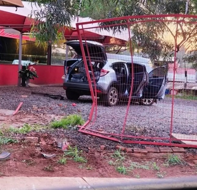 Durante perseguição policial na madrugada desta quinta-feira (6), em Campo Grande, um carro carregado com maconha perdeu o controle e invadiu uma churrascaria na Avenida Gunter Hans, destruindo o portão do estabelecimento. O motorista tentou fugir a pé, mas foi preso logo em seguida pela PRF (Polícia Rodoviária Federal).