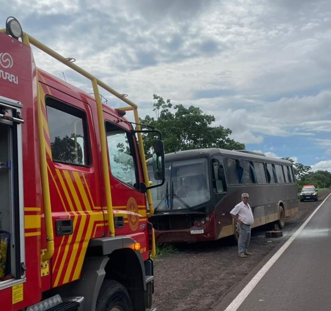 Ao chegar ao local, a equipe constatou que se tratava de um ônibus que havia incendiado no canteiro da rodovia. No momento do sinistro, não havia passageiros a bordo.