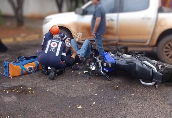 Na manhã desta segunda-feira (17), um motociclista ficou ferido após colidir com uma camionete na rua João Dias, no bairro Alto, em Aquidauana.