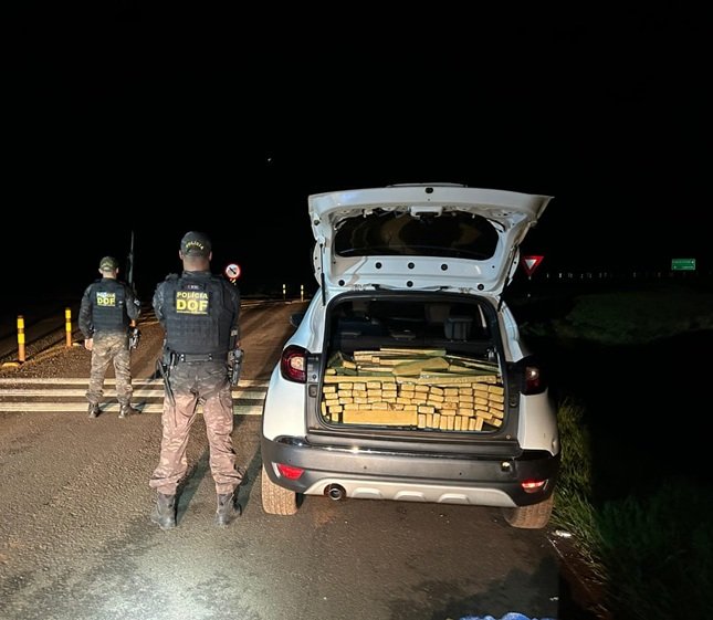 Policiais militares do DOF (Departamento de Operações de Fronteira) recuperaram, nesta segunda-feira (24), em Laguna Carapã, um veículo Renault Captur roubado no Estado de São Paulo e carregado com 712 quilos de maconha.
