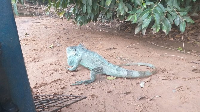 Uma moradora, de 65 anos, acionou os Policiais Militares Ambientais de Coxim, em virtude do surgimento na noite de segfunda-feira (15), de um animal silvestre da espécie Iguana iguana (iguana-verde) no quintal de sua residência.