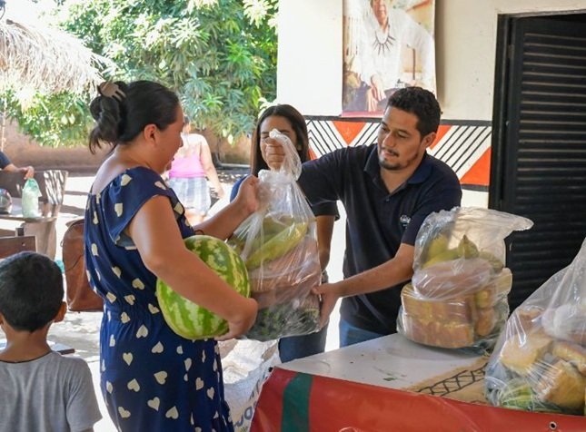 Acompanharam a entrega dos alimentos, os secretários de Assistência Social e Produção, respectivamente, Clériton Alvarenga e Cipriano Mendes; o gestor do Programa de Aquisição de Alimentos (PAA), Rubens Jesus; a presidente da Associação Kopenoti, Lucimara Batista Farias; o vice-cacique Matheus Pereira; além da equipe do CRAS I, que atendem as famílias da comunidade.