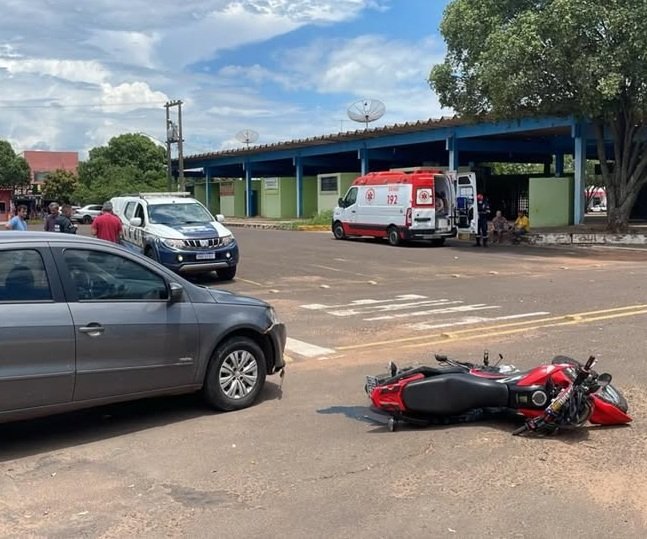 Na manhã desta segunda-feira (15), por volta das 10h40, o Serviço de Atendimento Móvel de Urgência (SAMU) foi acionado para atender uma colisão entre um VW Voyage e uma moto Honda Broz na Rua Roberto Scaff, esquina com Rua Irmãos Diacópulos, no Bairro Alto.