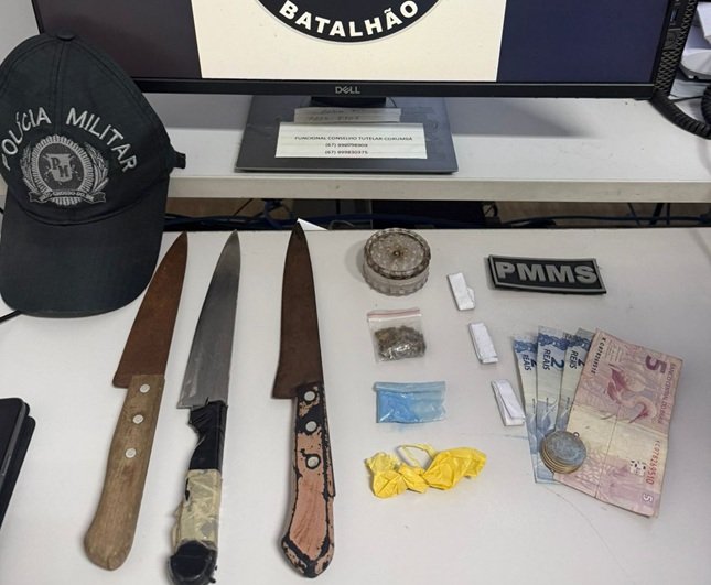 A Polícia Militar de Mato Grosso do Sul apreendeu, na manhã de sábado (3 de janeiro), drogas, armas brancas e outros objetos durante patrulhamento ostensivo realizado na região central de Corumbá.