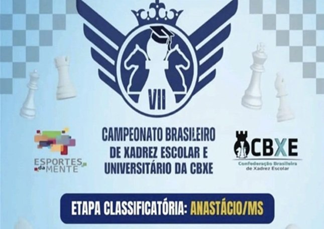 O município de Anastácio será sede, no mês de março, de uma etapa classificatória do VII Campeonato Brasileiro de Xadrez Escolar e Universitário, promovido pela Confederação Brasileira de Xadrez Escolar (CBXE). A competição será disputada nos ritmos Blitz e Rápido e reunirá enxadristas de diversas categorias.