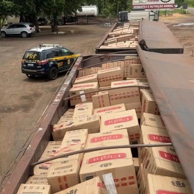 A Polícia Rodoviária Federal apreendeu, ontem, segunda-feira (12), 600 mil maços de cigarros de origem estrangeira durante fiscalização na BR-262, em Água Clara (MS).