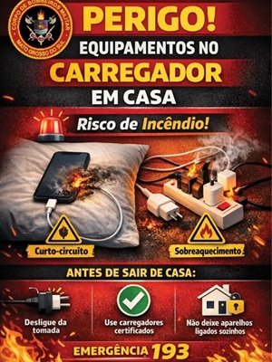 O Corpo de Bombeiros Militar de Mato Grosso do Sul alerta a população sobre os riscos de incêndio causados por equipamentos deixados conectados a carregadores, prática comum em residências e que pode resultar em acidentes graves.