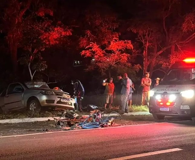 Após atingir o animal que atravessava a pista, o condutor invadiu a faixa contrária e bateu de frente com um carro de passeio que seguia no sentido oposto. O impacto mobilizou equipes de resgate no início da noite.