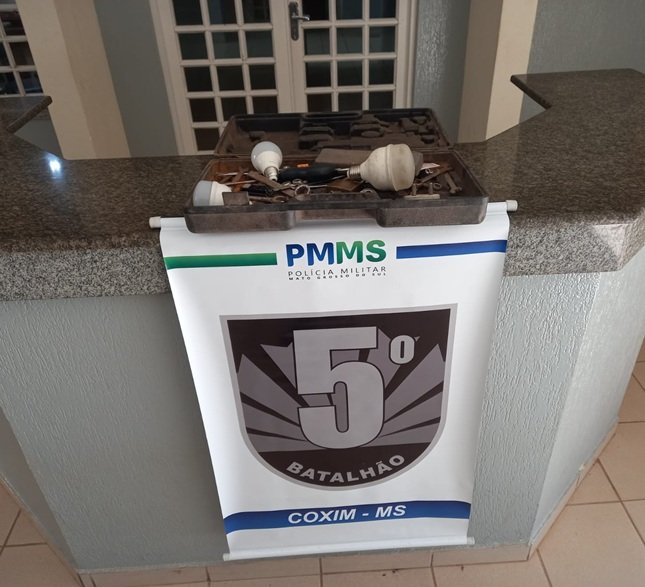 O proprietário das ferramentas solicitou os policiais, relatando que, ao passar pelo local, percebeu sinais suspeitos e constatou que ferramentas de sua empresa haviam sido furtadas do quintal do imóvel. Diante das informações, a guarnição deslocou-se até o endereço indicado na Rua Otair da Cruz Bandeira, no Bairro Nova Coxim.