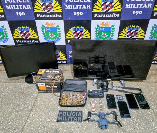 A equipe deslocou-se até o endereço apontado pelo autor, onde uma mulher confirmou ter adquirido o televisor. No entanto, durante a inspeção no imóvel, os policiais visualizaram diversos outros itens sem comprovação de origem legal. Diante da suspeita de serem produtos de crimes anteriores, foram apreendidos: