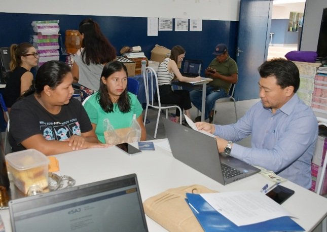 A atividade aconteceu na Escola Municipal Lutuma Dias, na Aldeia Limão Verde, com o objetivo de facilitar o acesso da população originária a serviços essenciais de cidadania, saúde e proteção social.