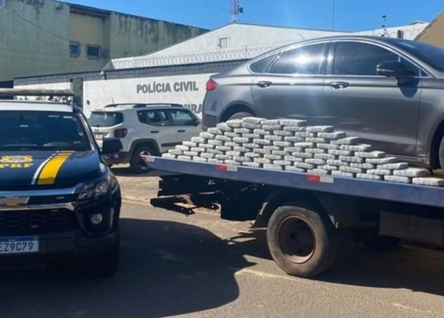 No interior do automóvel, foram encontrados 87 quilos de maconha.