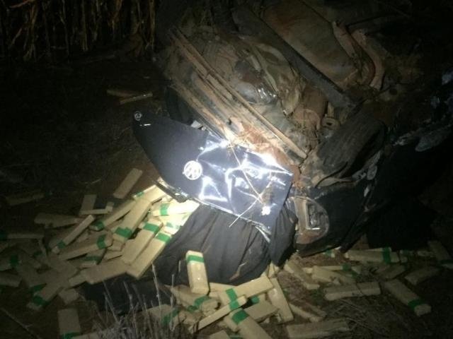 Mesmo ferido, motorista do tráfico fugiu para o mato após capotar um Volkswagen Fox lotado de maconha na noite de ontem na BR-463, no município de Ponta Porã. Perseguido por policiais rodoviários federais, o condutor fugiu em alta velocidade por dez quilômetros, circulando em zigue-zague na estrada.