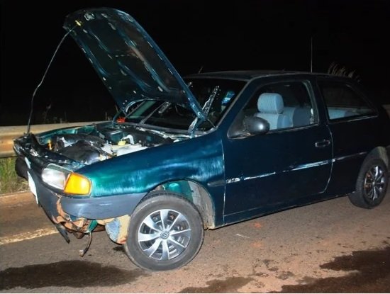 O veículo chegou a arrastar o animal por alguns metros, parando em meio a pista de rolamento.