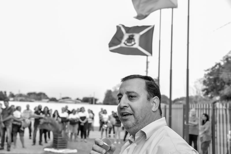 Nesta terça-feira, 13, o prefeito Odilon Ribeiro e a vice-prefeita Selma Suleiman ladeados por vereadores e servidores municipais participaram da cerimônia de inauguração do CMEI Enio Cabral na Vila São Pedro.