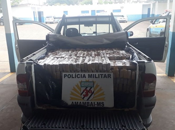 Na manhã de terça-feira (27), uma equipe de Rádio Patrulha da Polícia Militar de Amambai apreendeu 640 quilos de maconha que estava na carroceria de uma pickup.