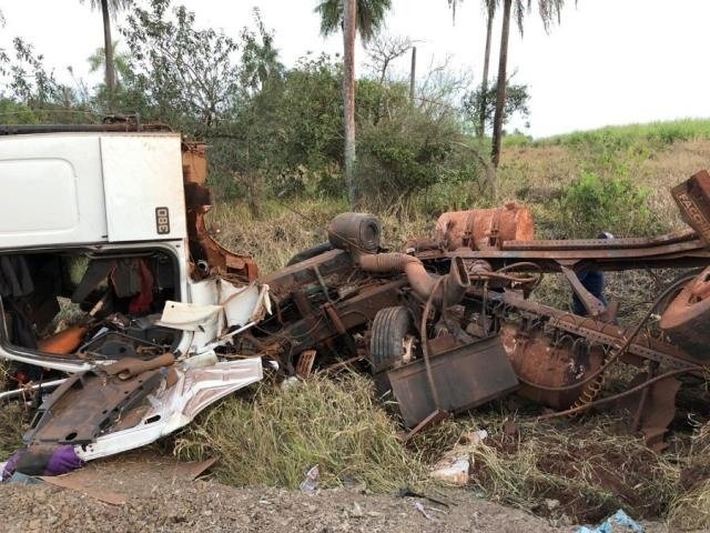 Caminhão ficou completamente destruído. (Foto: Ivinotícias)