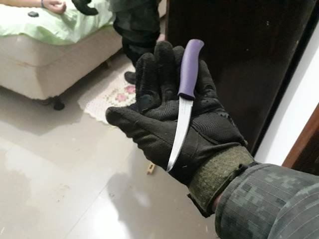 Segundo o boletim de ocorrência uma senhora de 58 anos após ingerir bebida alcoólica, discutir com sua filha e se trancar num dos quartos, ameaçava se matar com uma faca de cozinha.