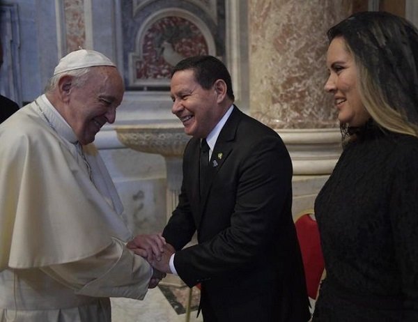 “Participei da cerimônia de canonização do Anjo Bom da Bahia [como também era conhecida a santa] pelo Papa Francisco. Irmã Dulce, que com grande amor e fé intercedeu pela saúde e vida de milhares de brasileiros, torna-se santa de todo nosso Brasil e do mundo”, comentou Mourão, revelando que, ao cumprimentar o Papa Francisco, foi surpreendido por uma pergunta inusitada.