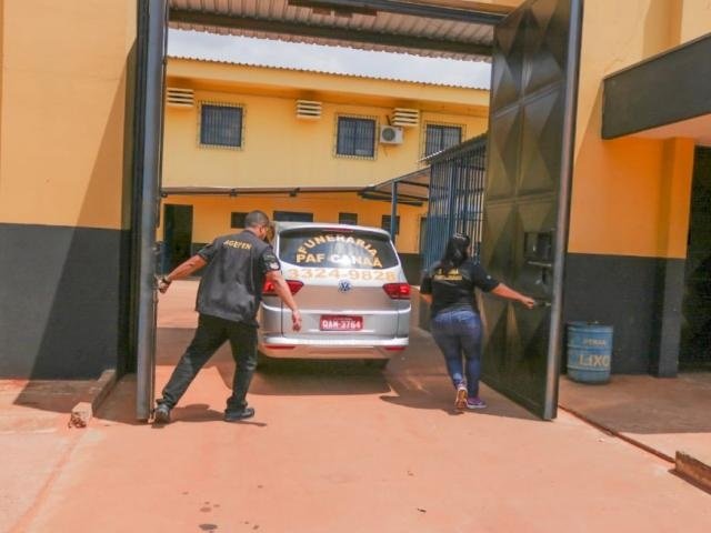 Funerária chega ao presídio para retirar corpos de 2 detentos.