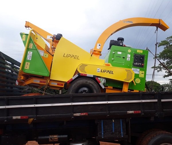 Chegou nesta manhã na sede da Secretaria Municipal de Obras e Serviços Urbanos de Aquidauana uma máquina 0km que tem a função de ser um picador mecânico de galhos de árvores.