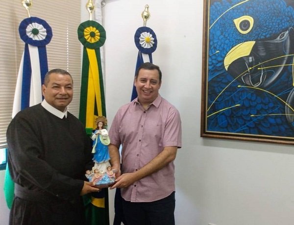 Hoje pela manhã, 26, o Padre Paulo Souza com a imagem peregrina estiveram no Paço Municipal, onde foram recepcionados pelo prefeito Odilon Ribeiro e servidores municipais, que logo depois ouviram uma palavra de fé e rezaram juntos pela cidade, pela gestão e pelas famílias.