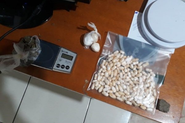 Com as novas informações, os policiais foram até as residências citadas e encontraram diversas porções de maconha, cocaína, além de uma balança de precisão e outros apetrechos utilizados no embalo de tais produtos.