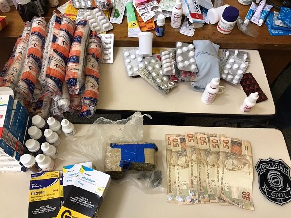 Na residência do agente de saúde, também localizada no distrito, foram encontradas drogas, dinheiro em espécie e excessiva quantidade de medicamentos de uso controlado pertencentes à rede pública municipal. Foram aprendidos maconha, uma motocicleta, dinheiro, anestésicos, benzodiapínicos, opióides e outros medicamentos.