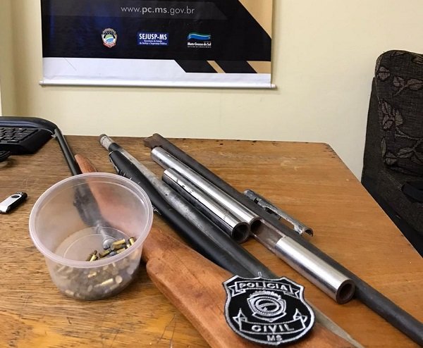 Na manhã de hoje, Investigadores da Primeira Delegacia de Aquidauana prenderam em flagrante um serralheiro que estava em posse de uma arma de fogo de fabricação artesanal, bem como de 48 (quarenta e oito) munições intactas de calibre .22