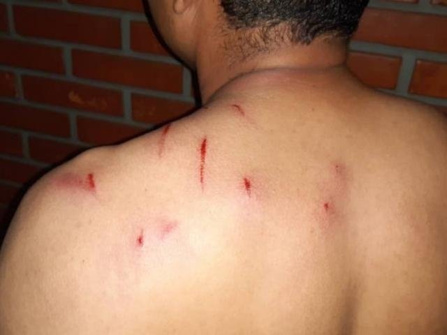 O taxista foi imobilizado e chutado diversas vezes, depois esfaqueado no ombro, e teve a camiseta rasgada antes de conseguir fugir.