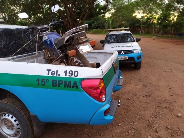 Motocicleta que era usada para arrastar madeira foi apreendida. (Fotos: Divulgação/PMA)