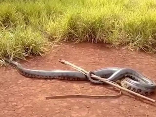 Sucuri foi capturado e solta às margens do córrego Indaiazinho (Foto: divulgação/PMA)